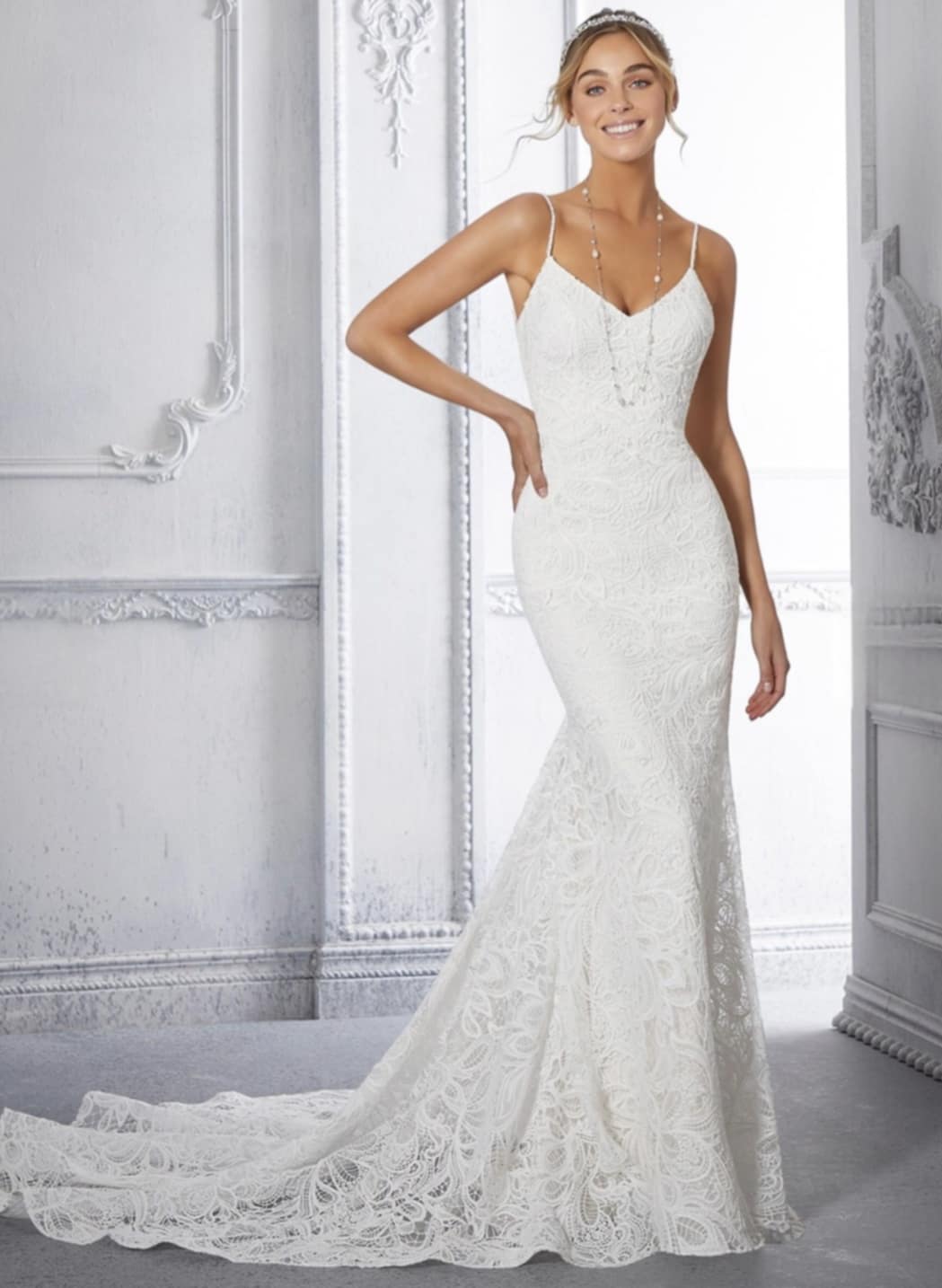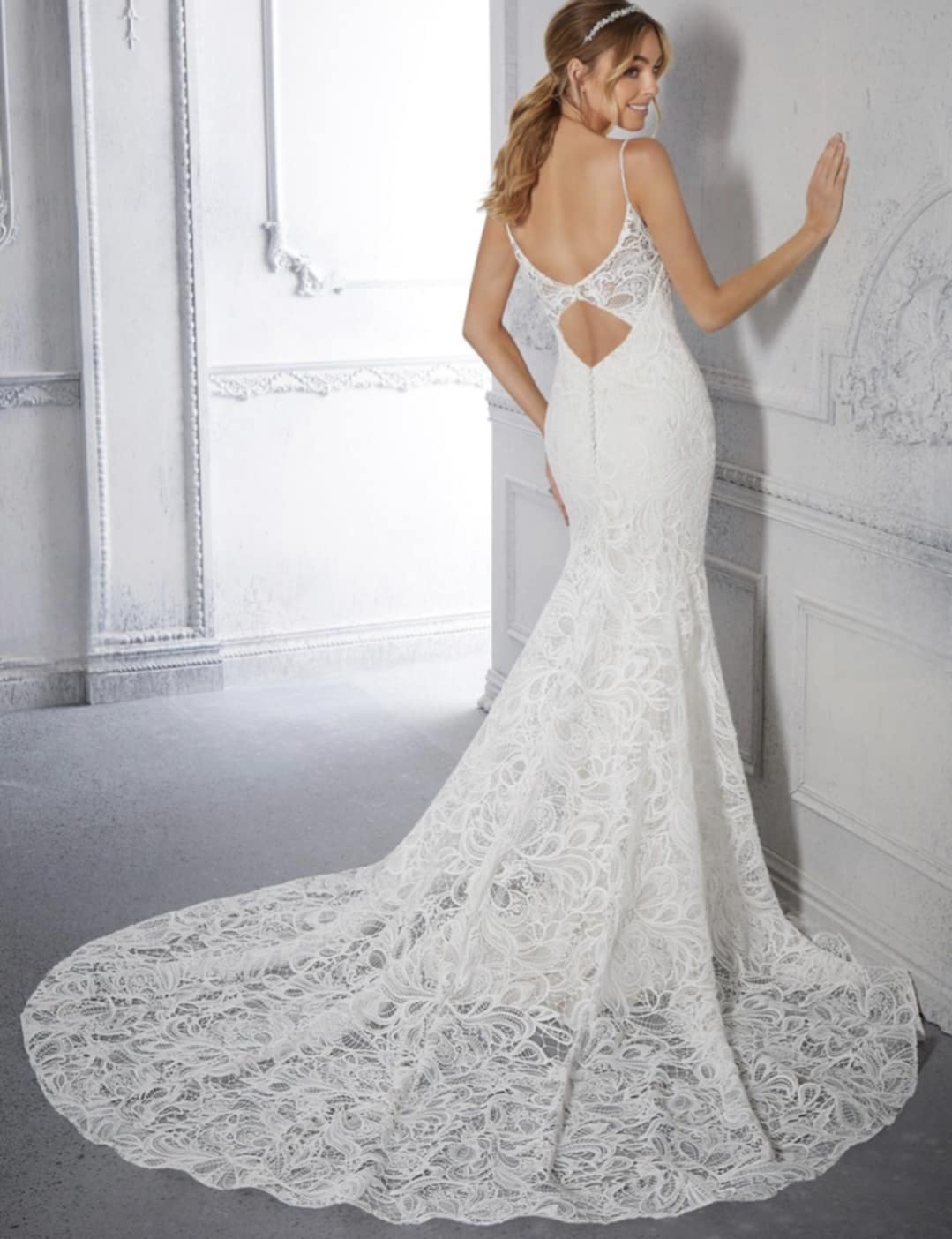 MORILEE WEDDING DRESS.ΥΠΕΡΟΧΟ ΓΟΡΓΟΝΕ ΝΥΦΙΚΟ ΟΛΟ ΔΑΝΤΕΛΑ ΜΕ ΥΠΕΡΟΧΟ ΣΧΕΔΙΟ ΣΤΗΝ ΠΛΑΤΗ ΜΕ ΡΑΝΤΑΚΙ ΚΑΙ ΜΑΚΡΙΑ ΟΥΡΑ.