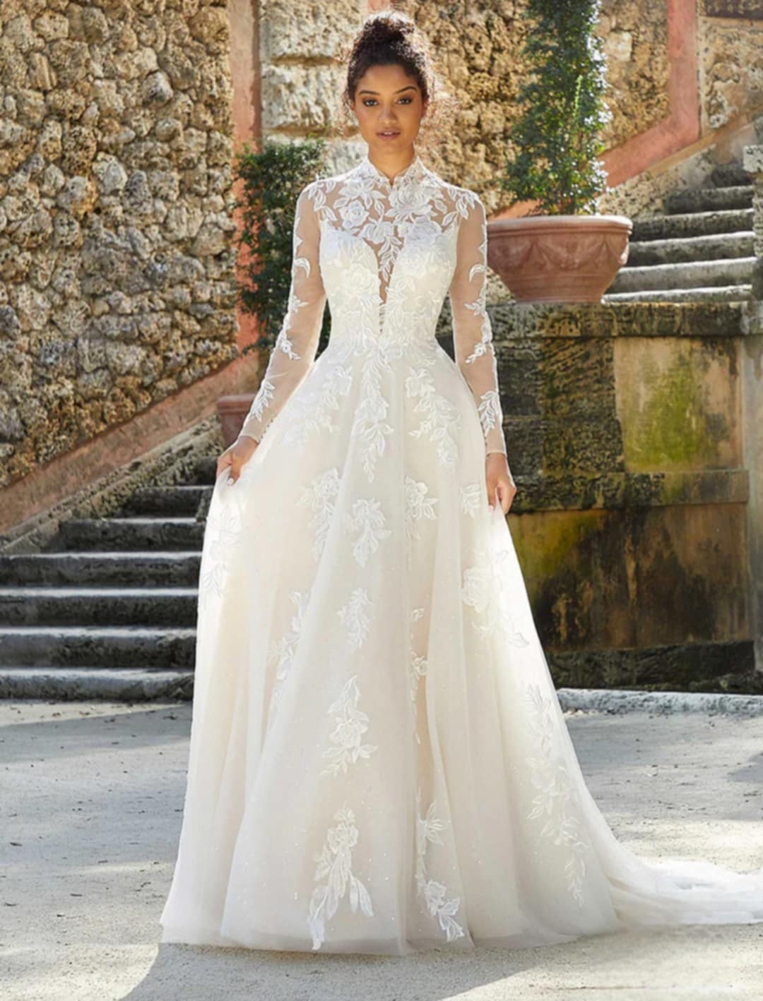 Morilee Veni Infantino Wedding Dress.ΥΠΕΡΟΧΟ ΝΥΦΙΚΟ ΜΕ ΔΑΝΤΕΛΑ. ΜΕ ΜΑΝΙΚΙ,ΚΛΕΙΣΤΟ ΜΠΡΟΣΤΑ ΚΑΙ ΠΙΣΩ ΜΕ ΜΑΚΡΙΑ ΟΥΡΑ.