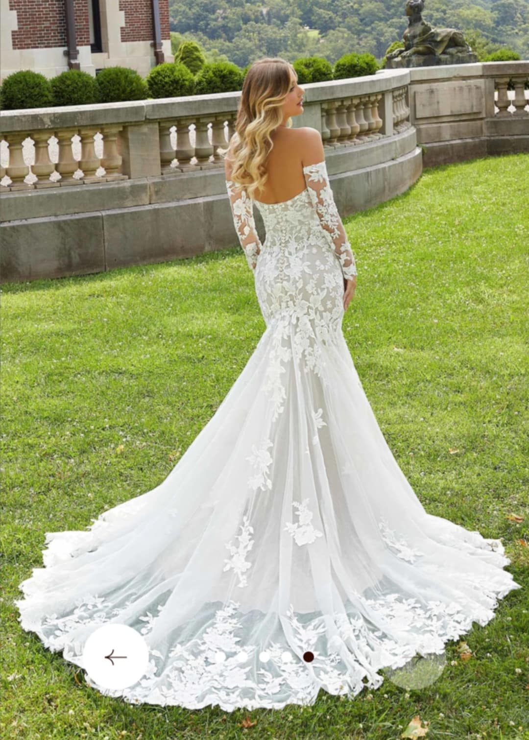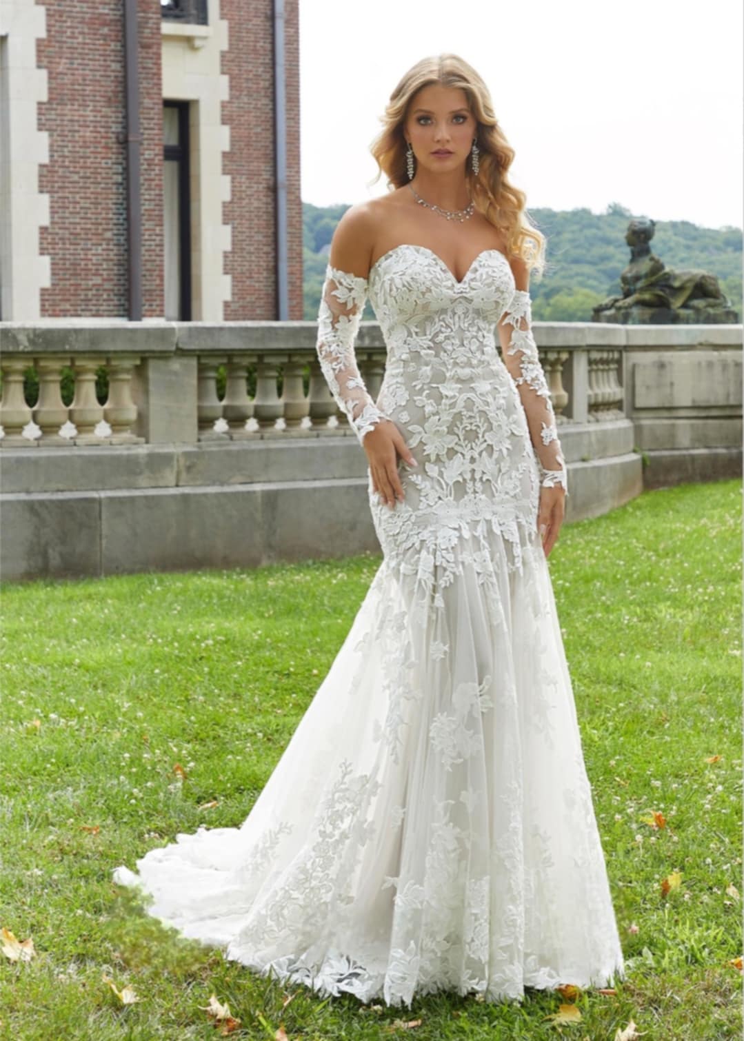 MORILEE WEDDING DRESS.ΥΠΕΡΟΧΟ ΓΟΡΓΟΝΕ ΝΥΦΙΚΟ ME ΔΑΝΤΕΛΑ ΚΑΙ TOYLI. ΜΠΟΥΣΤΟ ΚΑΡΔΙΑ ME ΑΠΟΣΠΟΜΕΝΑ ΜΑΝΙΚΙΑ ΚΑΙ ΜΑΚΡΙΑ ΟΥΡΑ.