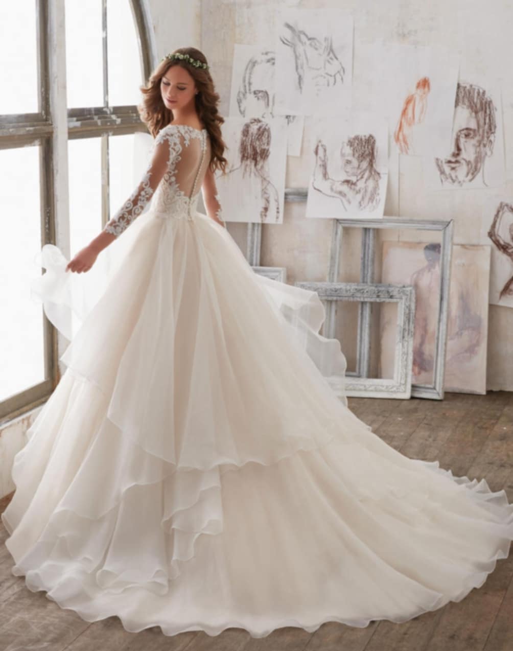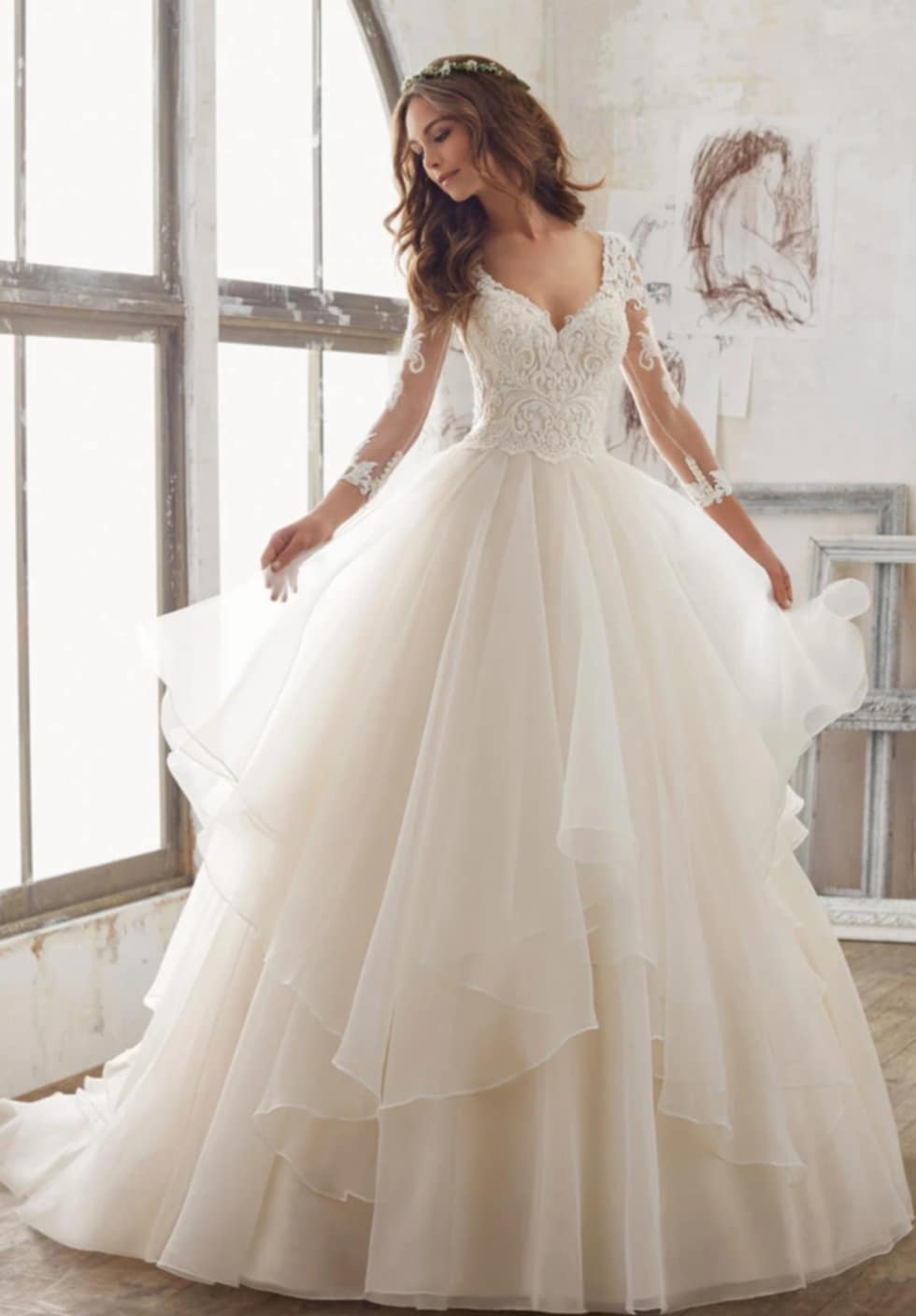 Morilee Veni Infantino Wedding Dress.ΥΠΕΡΟΧΟ ΝΥΦΙΚΟ ΜΕ ΑΣΥΜΜΕΤΡΗ ΦΟΥΣΤΑ ΚΑΙ ΜΑΝΙΚΙΑ.